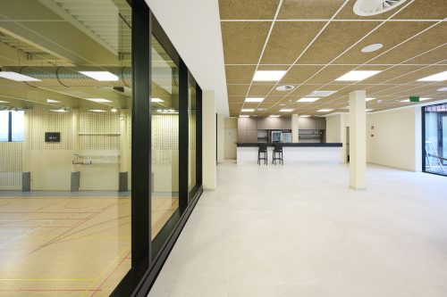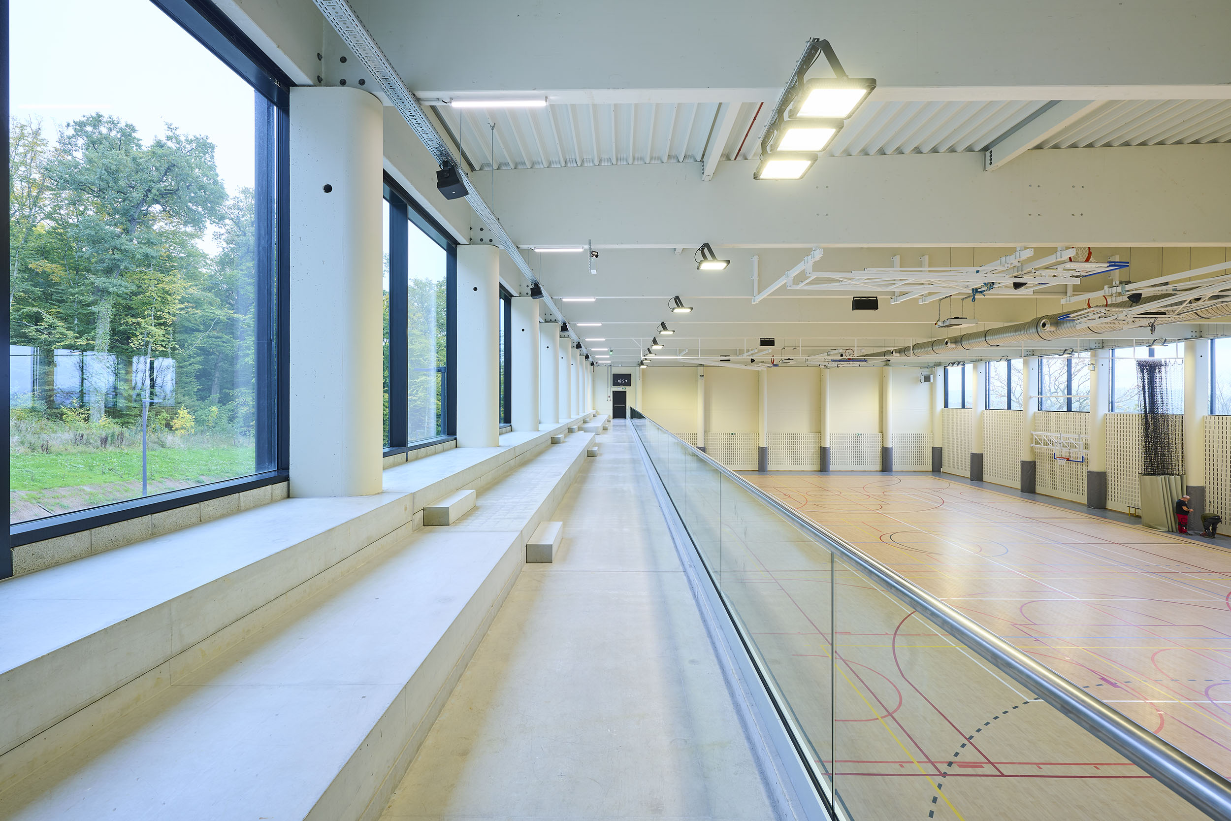 Dit moderne en multifunctionele gebouw biedt een speeloppervlakte van meer dan 1.100 m², een gewichthefzaal, een polyvalente zaal, een klimzone, een gezellige cafetaria en kleedkamers. Het geheel is ontworpen om een grote verscheidenheid aan sportactiviteiten te huisvesten en het sportieve en sociale aanbod in de regio te versterken.