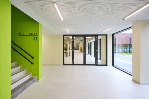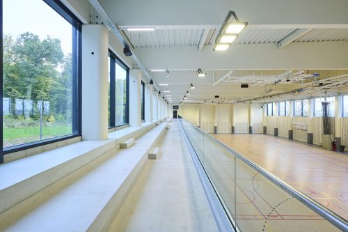 Ce bâtiment moderne et polyvalent propose une surface de jeux de plus de 1.100 m², une salle d’haltérophilie, une salle polyvalente, une zone d’escalade, ainsi qu’une cafétéria conviviale et des vestiaires. L’ensemble est pensé pour accueillir une grande variété d’activités sportives et renforcer l’offre sportive et sociale de la région.