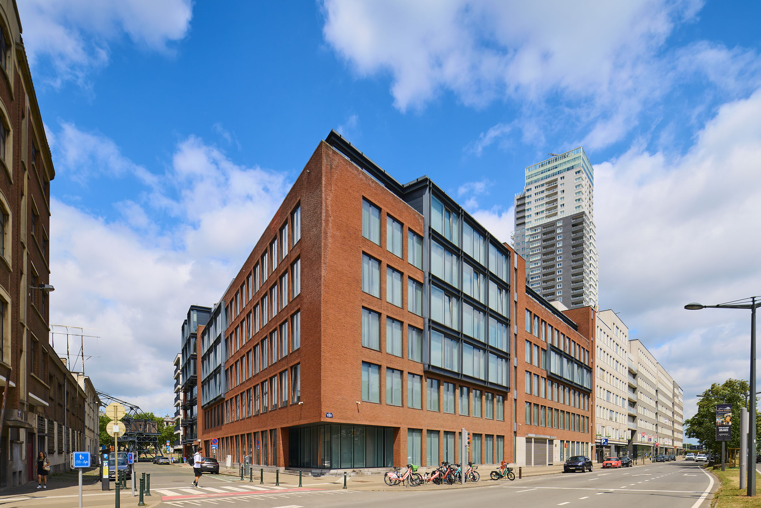 Le projet Waterside consistait à réaménager un immeuble de bureaux de 12.000 m² (hors sous-sols), ancien siège du SPF Justice – Régie du Travail Pénitentiaire, en un bâtiment scolaire destiné à accueillir la Haute École Francisco Ferrer. Situé à l’angle du quai de Willebroeck et de la rue de la Dyle à Bruxelles, l’édifice comprend également un parking souterrain de deux niveaux, partiellement réservé aux logements voisins de l’îlot Waterside.